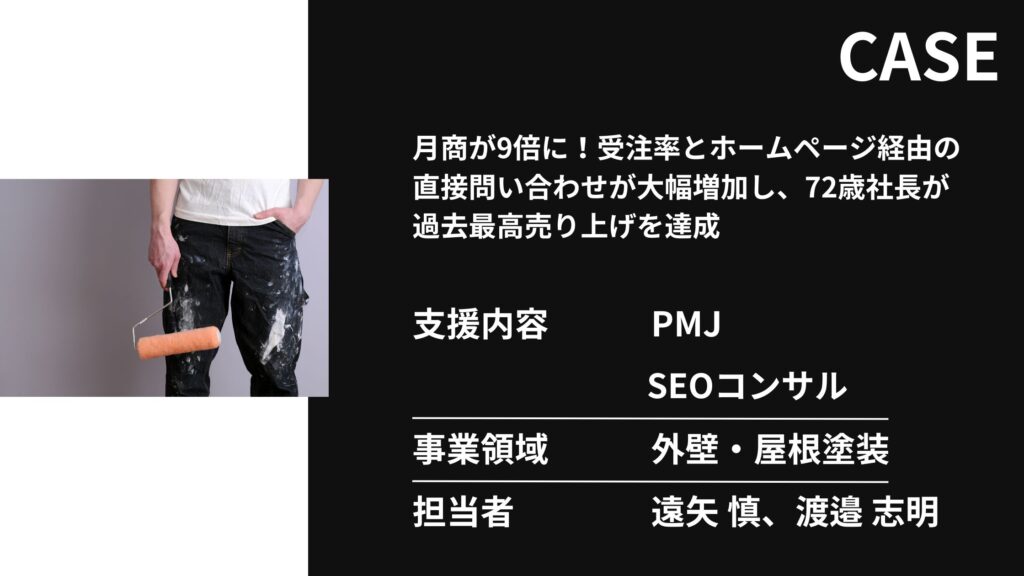 【PMJ】月商が9倍に!受注率とホームページ経由の直接問い合わせが大幅増加し、72歳社長が過去最高売り上げを達成